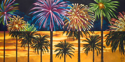 Beautiful palm standing tall, backlit by sunset’s vivid palette.